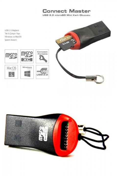 Micro SD kartınızdaki verileri hızlı şekilde bilgisayara aktarmanıza yardımcı olacak kart okuyucudur
