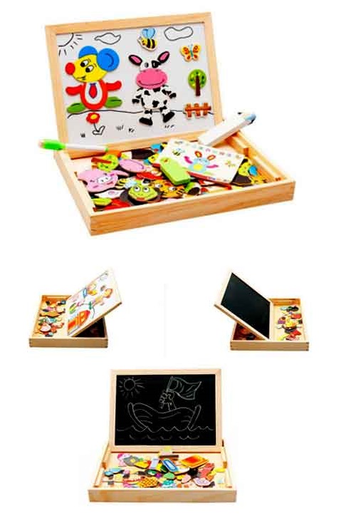 Mıknatıslı ahşap yazı tahtasının bir yüzü beyaz tahta diğer yüzü ise kara tahta dır.