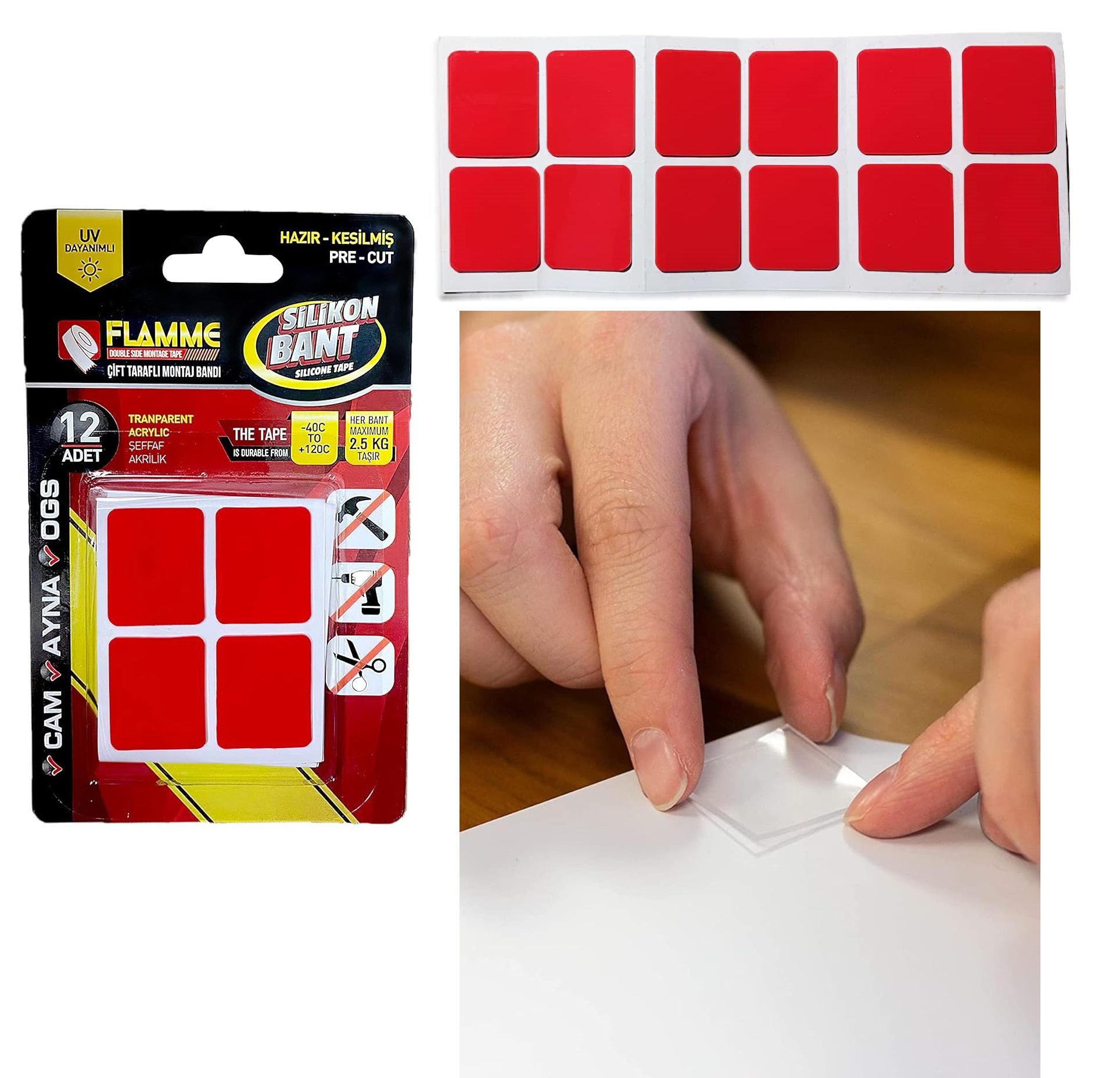 Montaj Bandı 2.5 KG - Çift Taraflı Hazır Kesilmiş Silikon Bant 12'li Montaj Bandı, Şeffaf