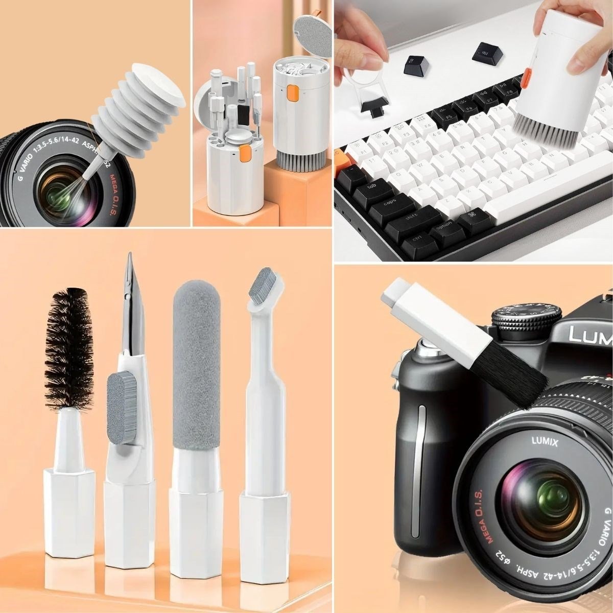 20 Parça Çok Fonksiyonlu Bilgisayar Temizleme Seti, teknolojik cihazların her köşesini kapsamlı bir şekilde temizleyebilmeniz için 20 farklı parça sunan, çok yönlü bir temizlik kitidir. Detaylı ve titiz bir temizlik deneyimi sunan bu set, özellikle klavye, cep telefonu, kablosuz kulaklık gibi günlük hayatta sıkça kullanılan ve kirlenmeye müsait cihazların hijyenini sağlamak için geliştirilmiştir. İşte setin içeriğindeki her bir parçanın özellikleri ve fonksiyonları: