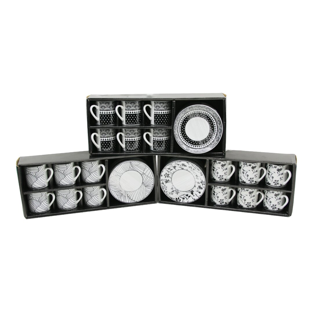 NEWLİFE CLKN-2371 ( SİYAH & BEYAZ ) ( 12PCS=6-TAKIM ) PORSELEN KAHVE FİNCANI ( ÇİÇEK & ÇİZGİ & NOKTA MİX DESEN )*12