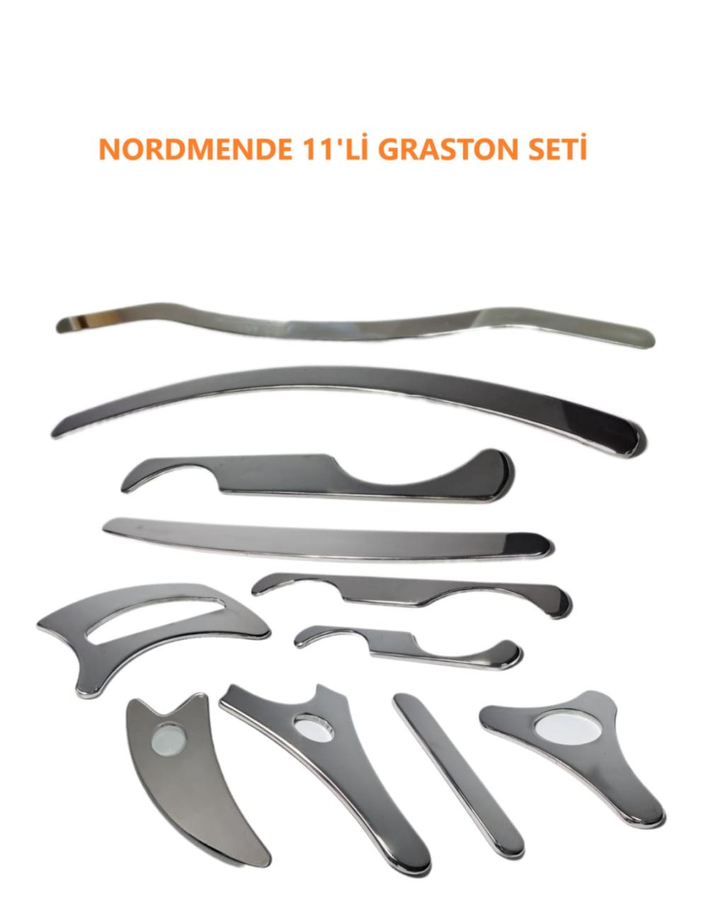 Metal Graston Seti, yumuşak doku mobilizasyonu için kullanılan özel tasarlanmış paslanmaz çelik aletlerden oluşan bir terapötik masaj setidir. Fizyoterapistler, spor terapistleri ve masaj terapistleri tarafından kullanılan bu set, kas ve fasya üzerindeki yapışıklıkları gidermeye, kan dolaşımını artırmaya ve hareket kabiliyetini iyileştirmeye yardımcı olur.