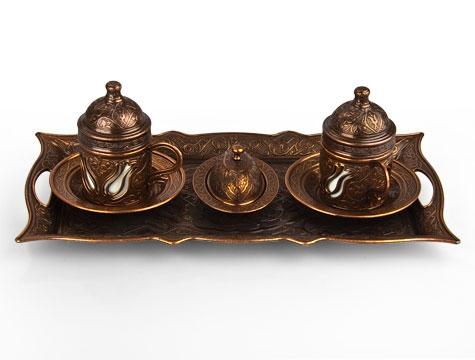 Osmanlı Motifli 2’li Türk Kahvesi Seti - Bakır