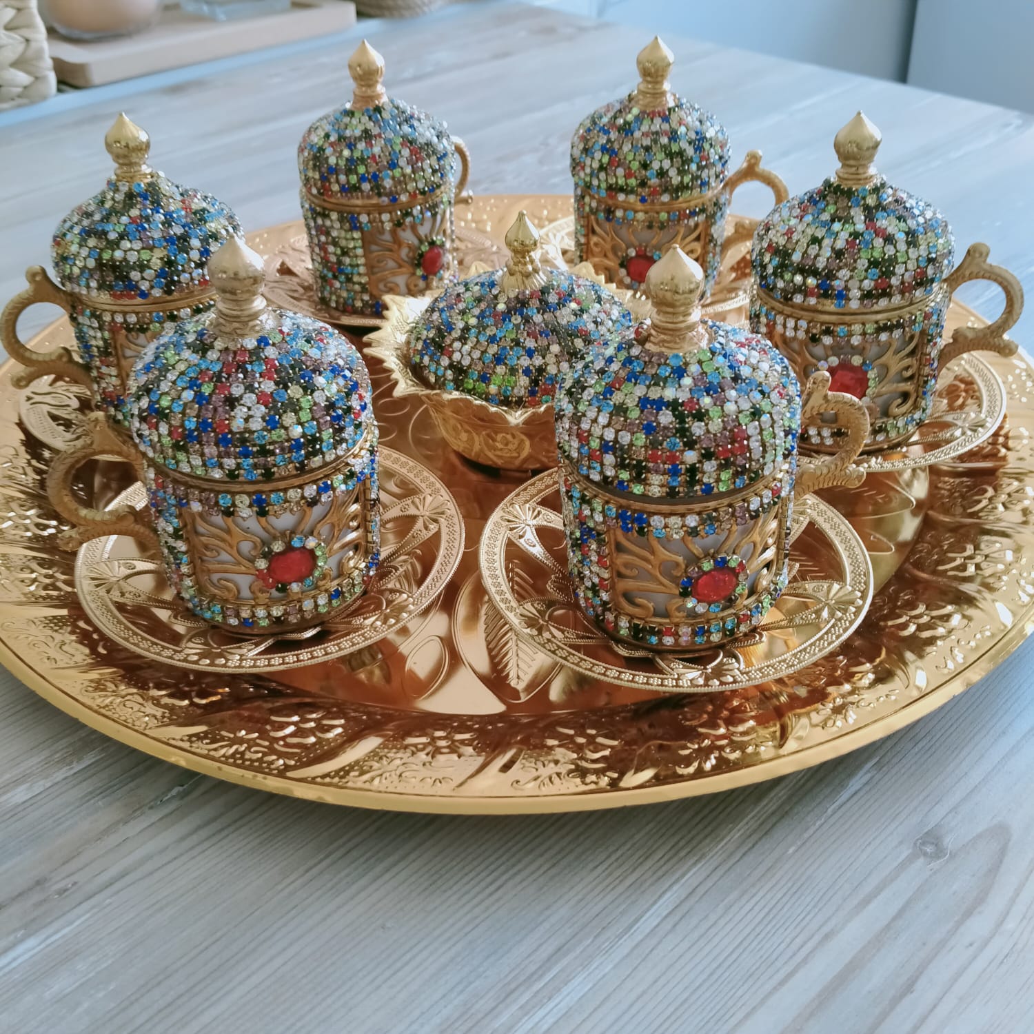 Misafirlerinize nostalji kokan Osmanlı motifleriyle işlenmiş Türk kahvelerini servis ederken muhabbetinize ayrı bir tat katacaksınız!