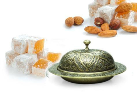 Osmanlı motifleriyle işlenmiş, Türk kahvelerinizin yanında ikramlarda bulunabileceğiniz göz alıcı parlaklıkta lokumluk ve şekerlemelik!