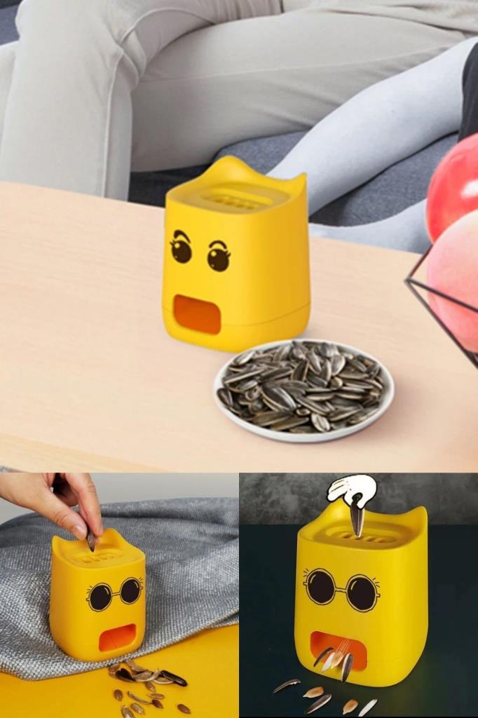 Televizyon izlerken size yoldaş olacak. Tek yaşıyorsanız size sohbet arkadaşı olabilir. Belki bir isim verip sohbette edersiniz, çünkü içindeki göz stickerları ile ister kadın ister erkek görünümü verebilirsiniz. Çekirdekleri size vermek için ağıza benzetilmiş. Göz stickerı ile de bir insan yüzünü andıran sevimli bir görüntüsü olmaktadır. Çekirdek kırma makinesi ile canınız sıkılmayacak. Artık bir çekirdek ve film arkadaşınız var. Ah keşke bir de konuşsa!