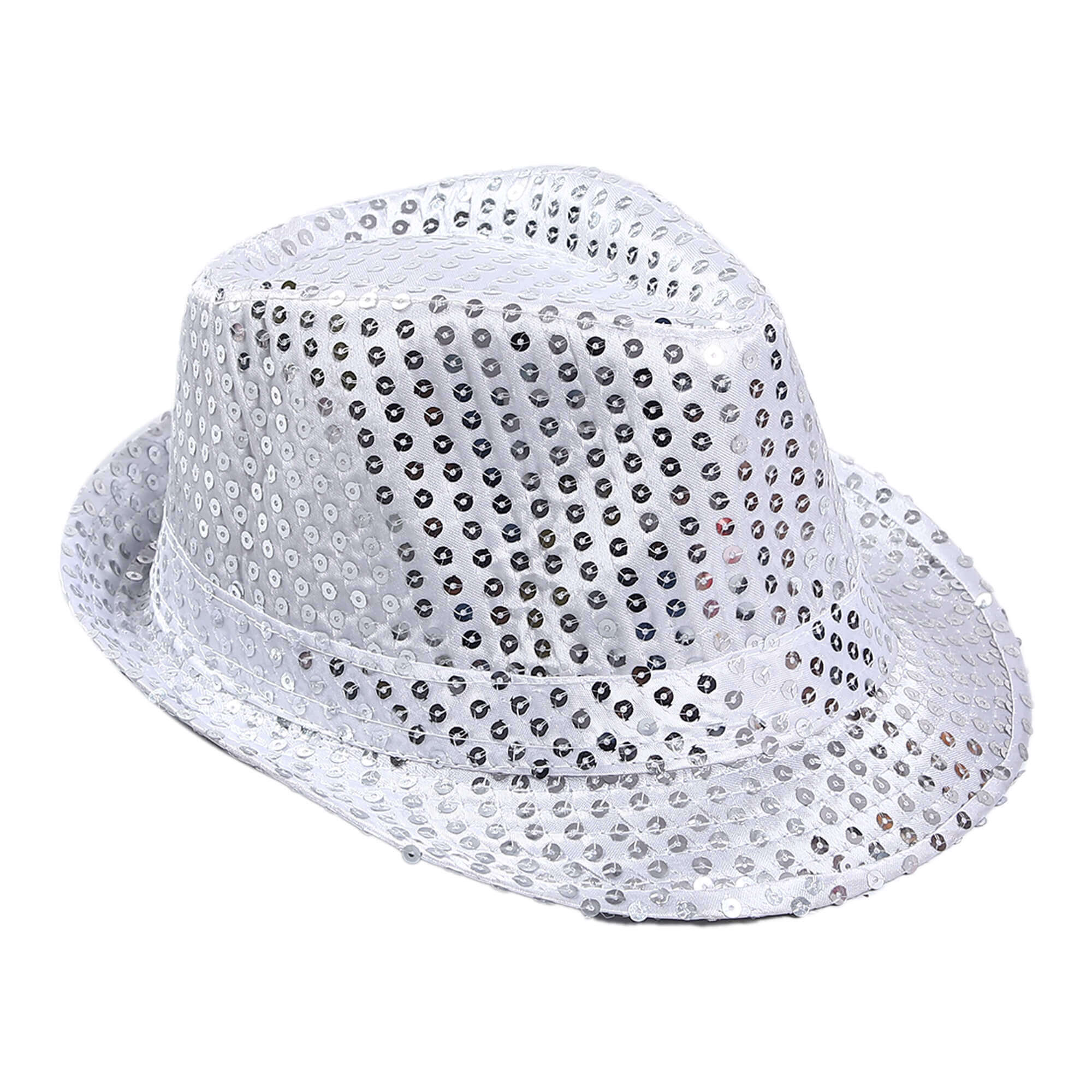 Bu şapka, ister bir gösteride sahneye çıkın ister bir kostüm partisi için giyinin, göz alıcı bir görünüm oluşturmak için mükemmeldir. Yumuşak gümüş payetlerle kaplı şapka, ışıltılı bir etki oluştururuyor.