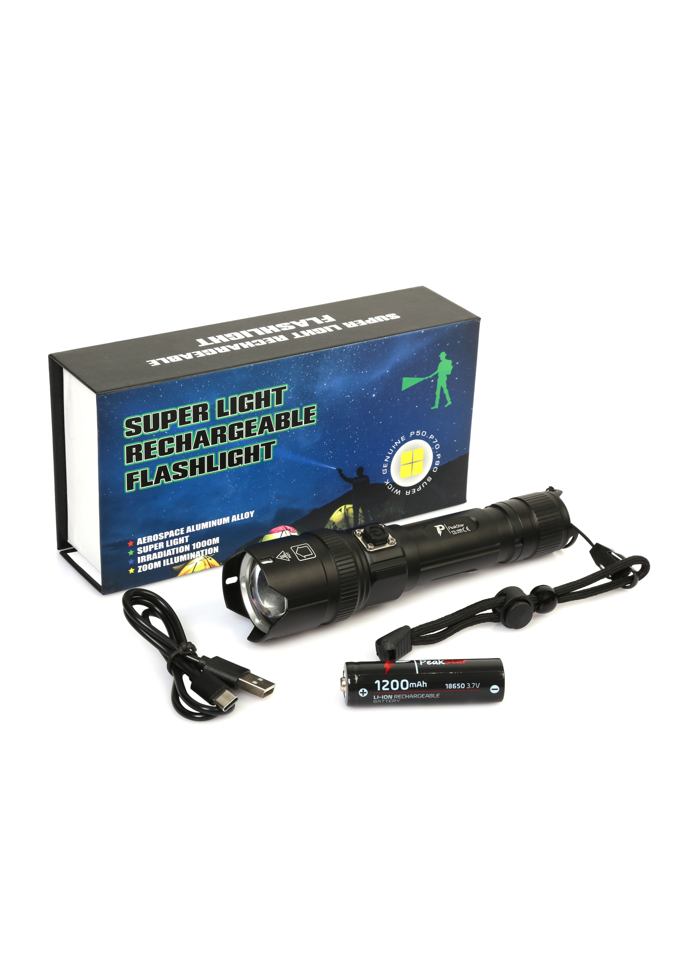PeakStar Ps-1668 Yüksek Güçlü Xhp50 Led Usb Şarj Edilebilir Profesyonel Zoomlu El Feneri