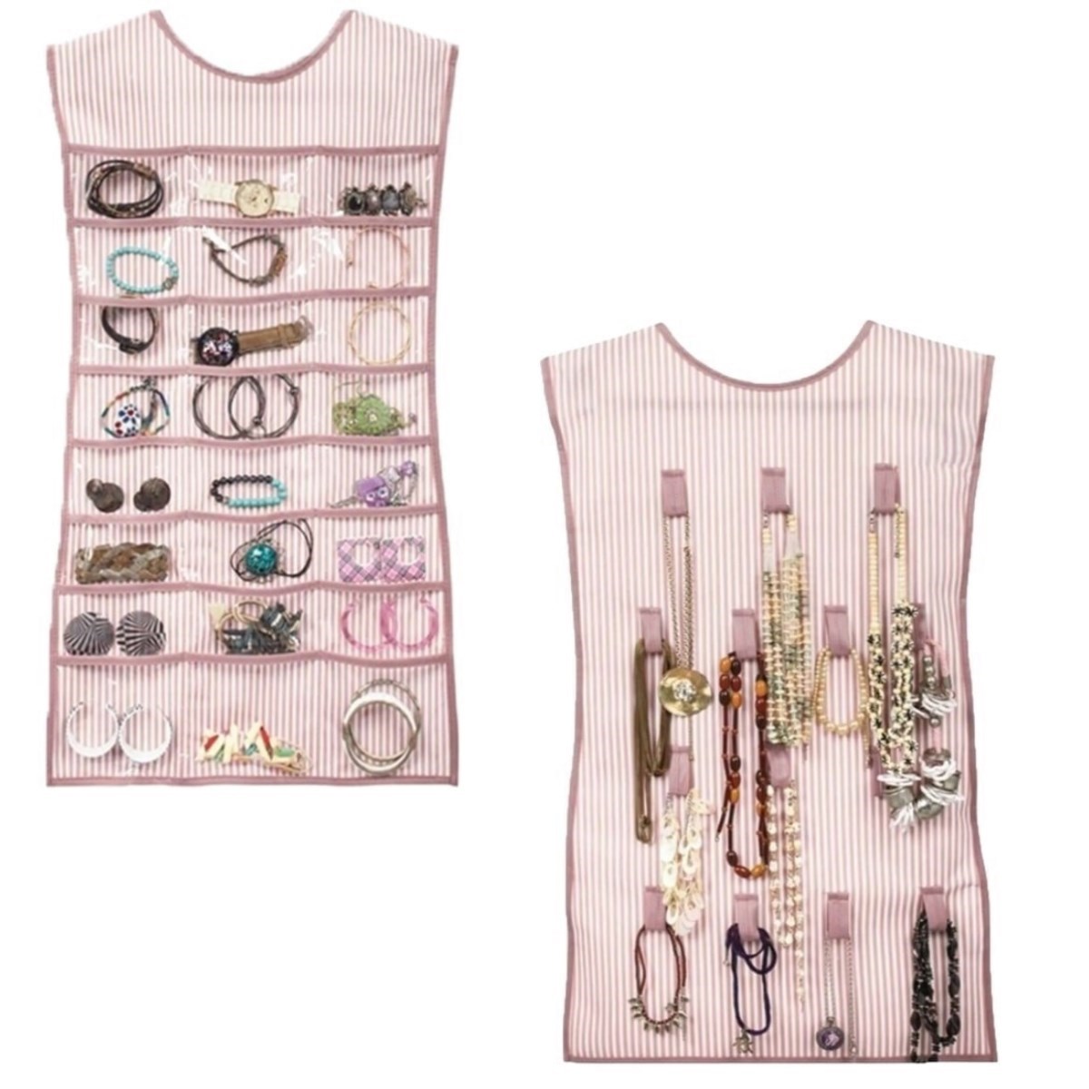 Pembe Çizgili Elbise Şeklinde Çift Taraflı Takı Organizeri