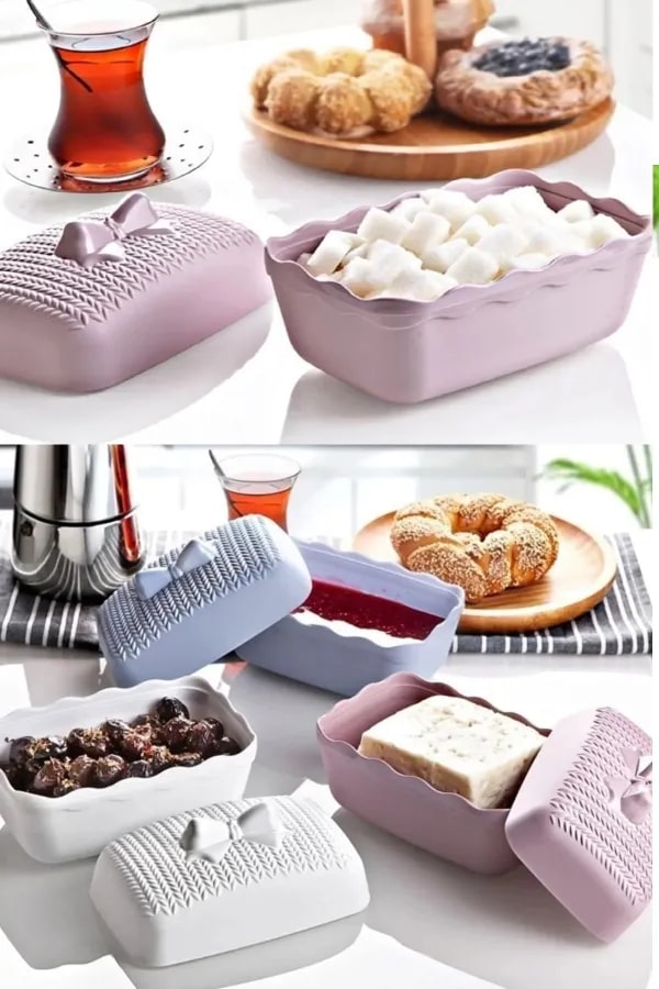 Ürün Paket İçeriği 2 adet Plastik Kahvaltılık -Şekerlik Saklama Kabı Plastik Çok Amaçlı Mutfak Organizer