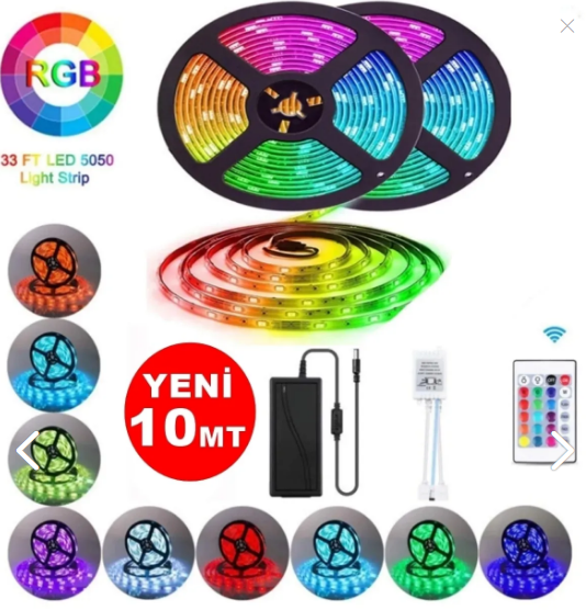 10 metre şerit çalışma gücü 12volt yapışkanlı bantı ile istediğiniz yüzeye uygulayabilirsiniz.