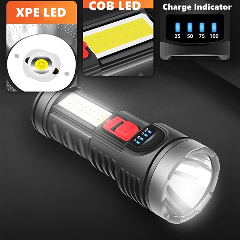 3. Dört aydınlatma modu, güçlü ışık-düşük ışık-strobe flaş-cob yan ışık parlak