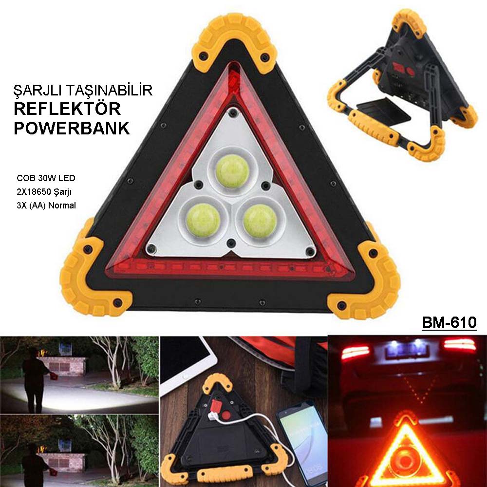 Üçgen uyarı işareti, yol güvenliği, acil arıza alarm lambası, çok fonksiyonlu yanıp sönen ışık, kırmızı Led ile yol işareti için iyi bir yardımcıdır. Üçgen şeklinde kamp feneri şarj edilebilir 4 çalışma modu ile; 1. yüksek parlaklık COB ledler, 2. Düşük parlaklık, 3.Led kırmızı ışık, 4. Led flaş. Bu fener herhangi bir arabanın bagajındaki doğru şey! Kamp lambaları, geceyi karanlıkta tökezleyerek geçirmenizi önler ve kamp alanını aydınlatarak çadırınızda harita okumanıza veya yemek pişirmenize yardımcı olur. Şarjlı kamp feneri, 2* 18650 lityum iyon pil ile çalışır. Uzun ömür sunan ve defalarca şarj olabilen bu piller sayesinde sizi yarı yolda bırakmayacaktır. 4 farklı modda çalışması sayesinde batarya ömürleri değişebilir, çadırın içini aydınlatmak için düşük seviyesini seçebilir ve şarjının daha uzun süre dayanmasını sağlayabilirsiniz.