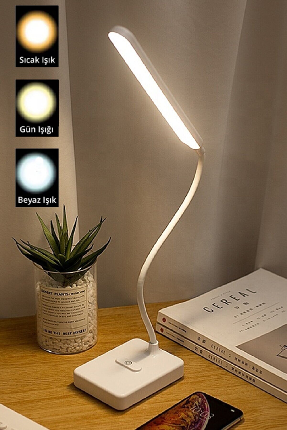 Şarjlı, 3 Renk Tonlu ( Sarı, Beyaz ve Gün Işığı) Dokunmatik Masa Lambası