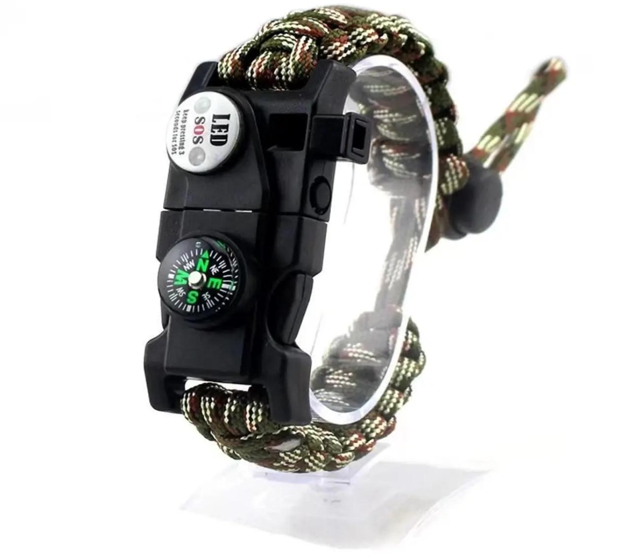 Güçlü paraşüt ipinden örgü bileklik Doğal ortamda ihtiyaç duyulabilecek 20 kritik işlevde yardımcınız Acil durumlar için taktiksel hayatta kalma bilekliği SOS led lamba Magnezyum Ateşleyici Çubuk Pusula Düdük Paracord İp TEKNİK BİLGİLER Toplam İp Boyu: 3,2 metre AVANTAJLAR Doğal ortamda ihtiyaç duyulabilen barınak yapımı