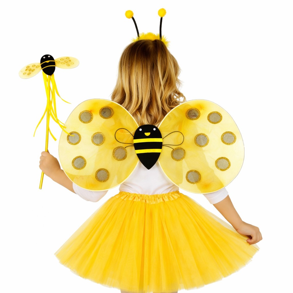 Sarı Renk Arı Kostüm Seti (Tütü, Kanat, Taç, Asa)