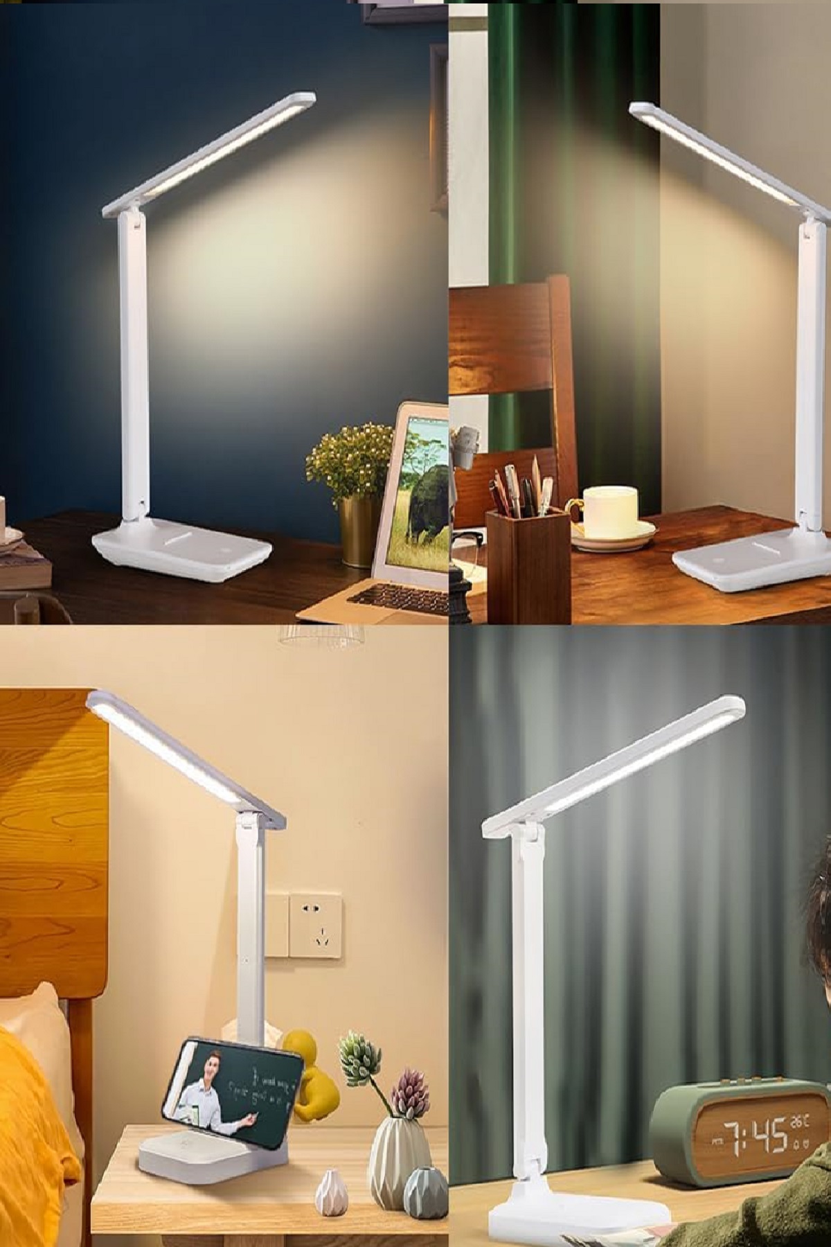 Şarjlı Usb Katlanır Masa Lambası – Telefon Tutuculu 3 Modlu Dokunmatik Led Gece Kitap Lambası