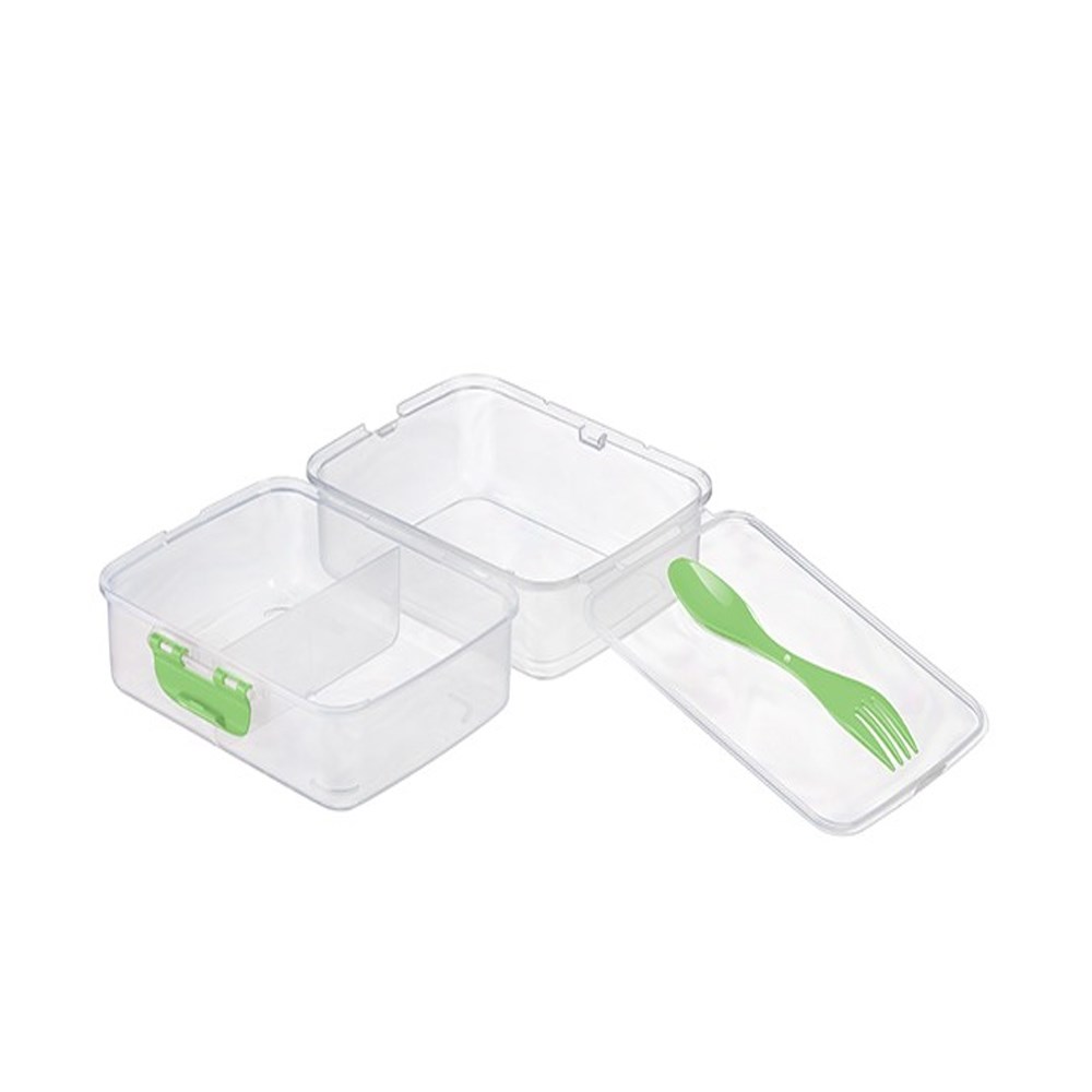 Şeffaf Kare 3 Bölmeli Çatal Kaşıklı Beslenme Kabı - Diyet Kabı