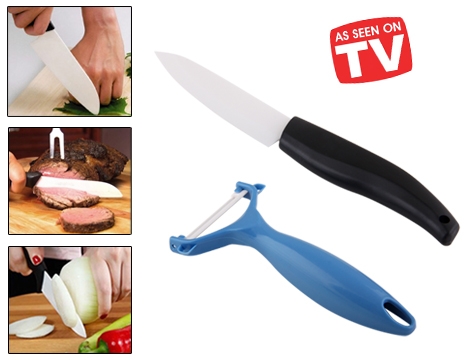 Mutfakta zaman geçirmeyi sevenler için geliyor. Seramik Bıçak & Seramik Uçlu Sebze Soyucu Set ile hem yiyecekleriniz vitaminlerini kaybetmeyecek hem de siz körleşen bıçakları bilemekten kurtulacaksınız !