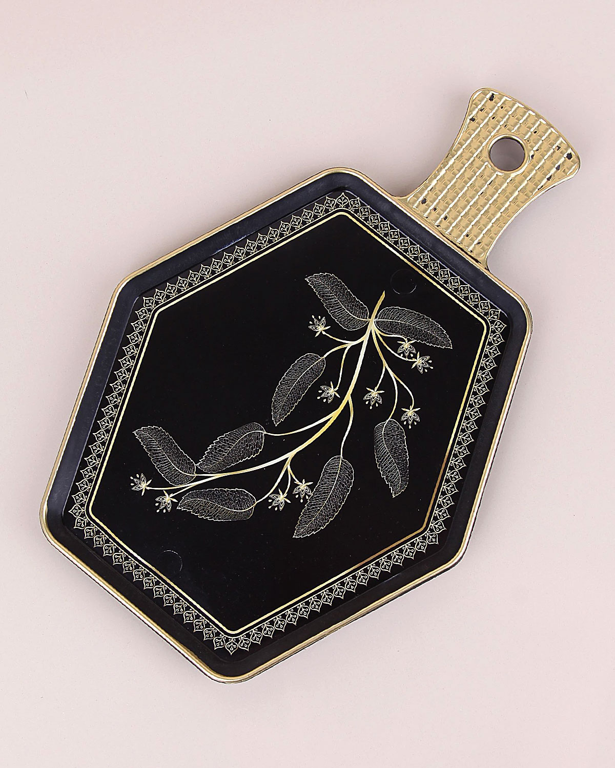 Siyah Altıgen Sunum Tabağı - Kahve Tepsisi