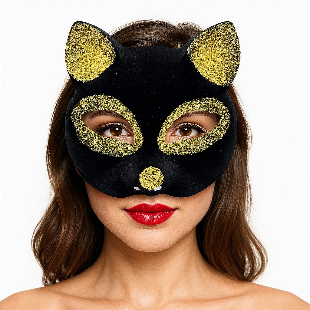 Siyah Renk Gold Simli Süet Kedi Maskesi ile sevimli ve eğlenceli bir görünüm oluşturun ve özel günlerinizi unutulmaz kılın!