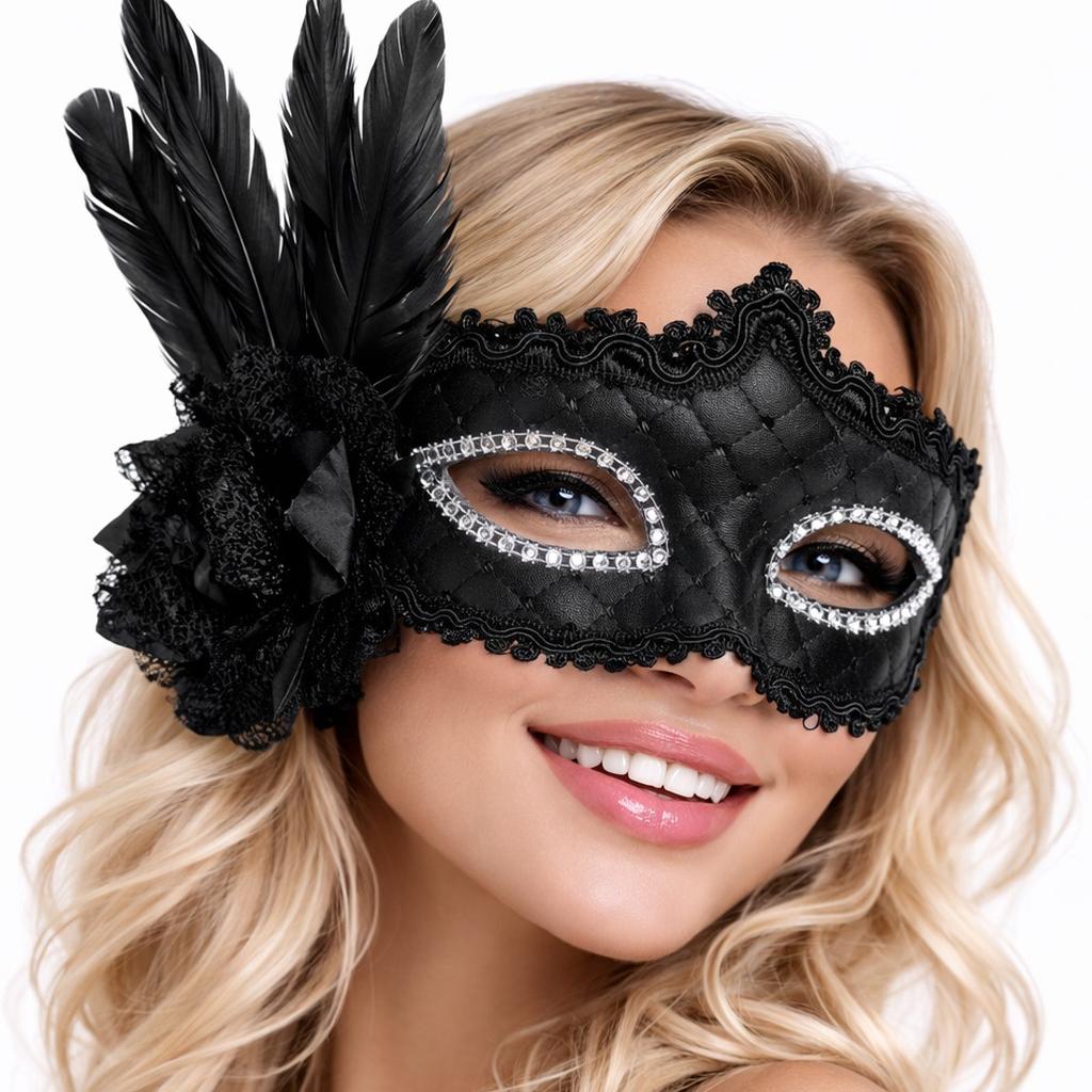 Siyah rengin enerjisi ile kombinlerinizi tamamlayan bu maske; karnaval, balo, kostüm partileri ve özel organizasyonlar için mükemmel bir tercihtir.