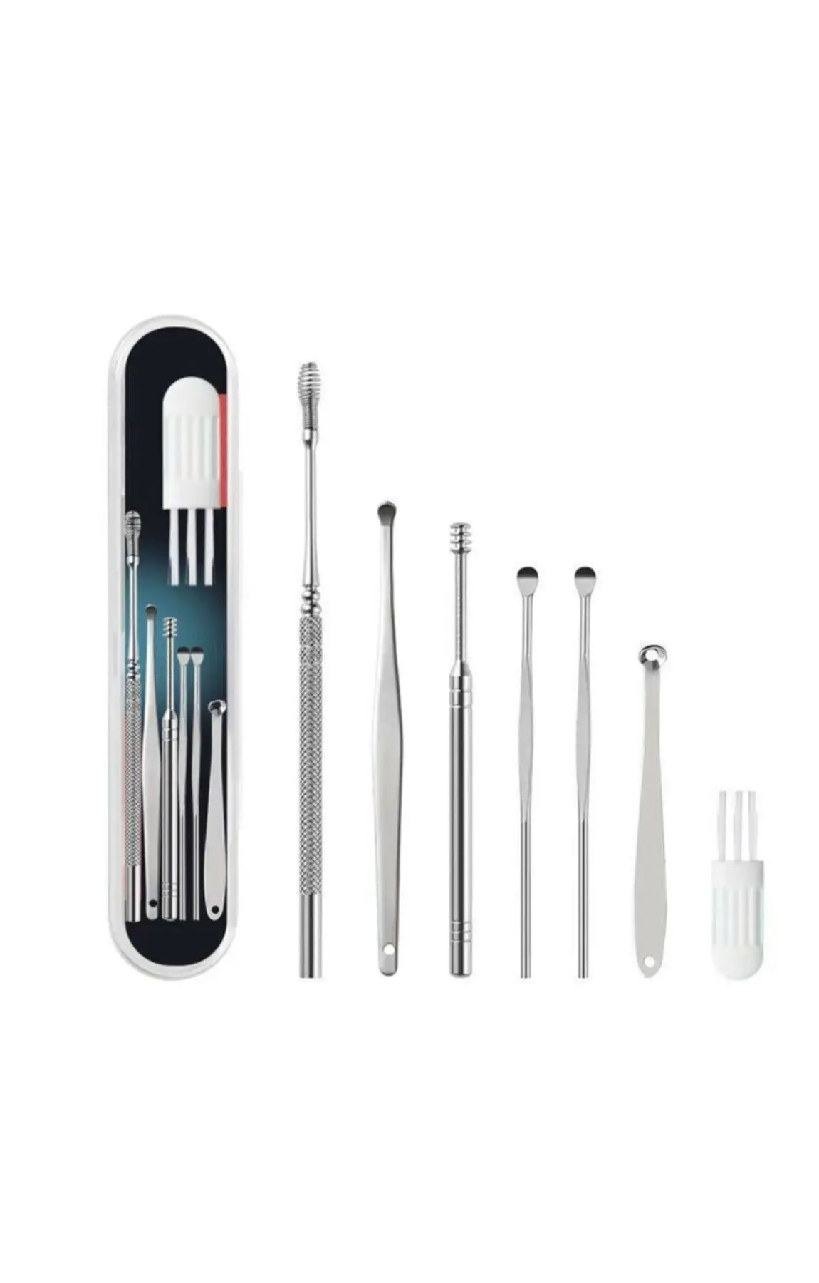 Ürün içeriği yukarıdaki gibi olan Spiral Kulak Temizleme- Paslanmaz Çelik Temizleme Seti gönderilmektedir