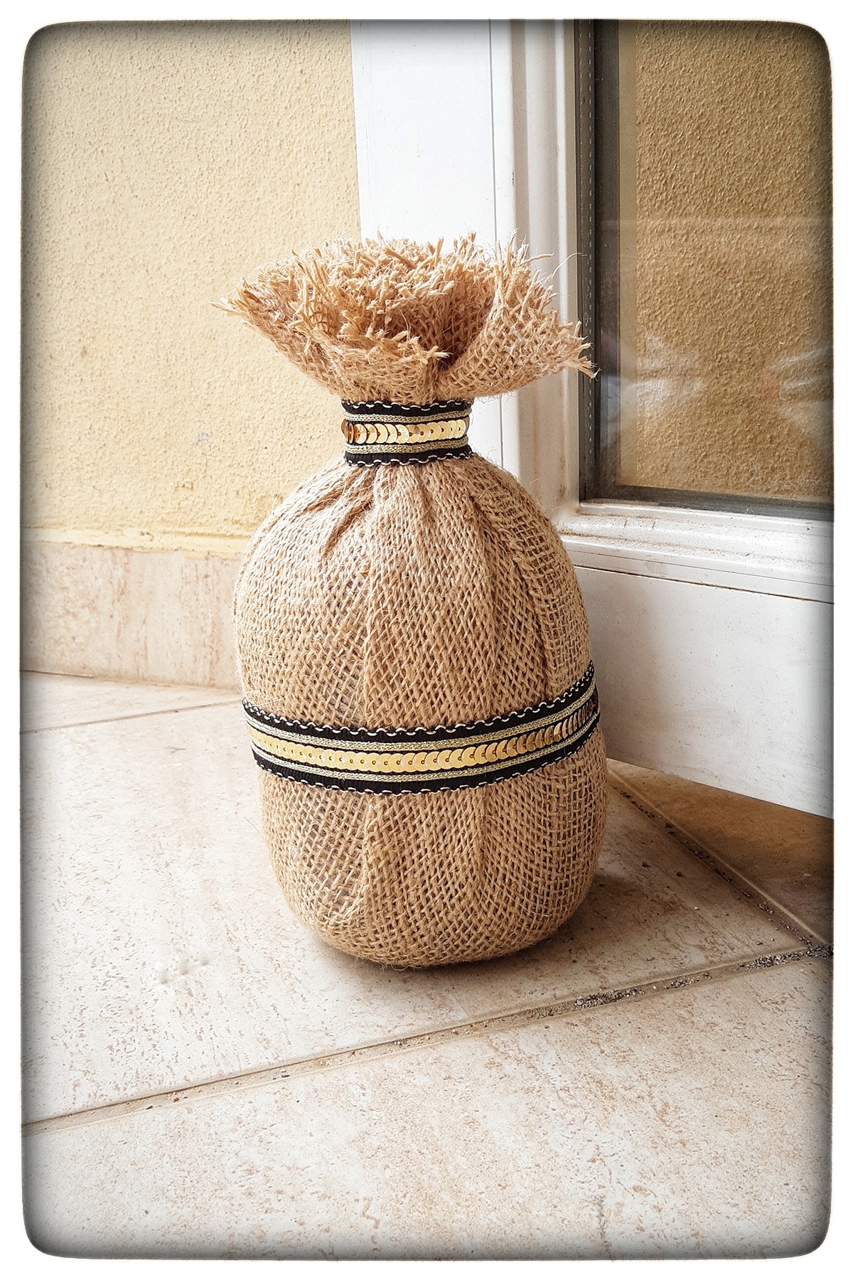 Yapımında kum ve jüt kumaş kullanılmış son derece dekoratif bir üründür
