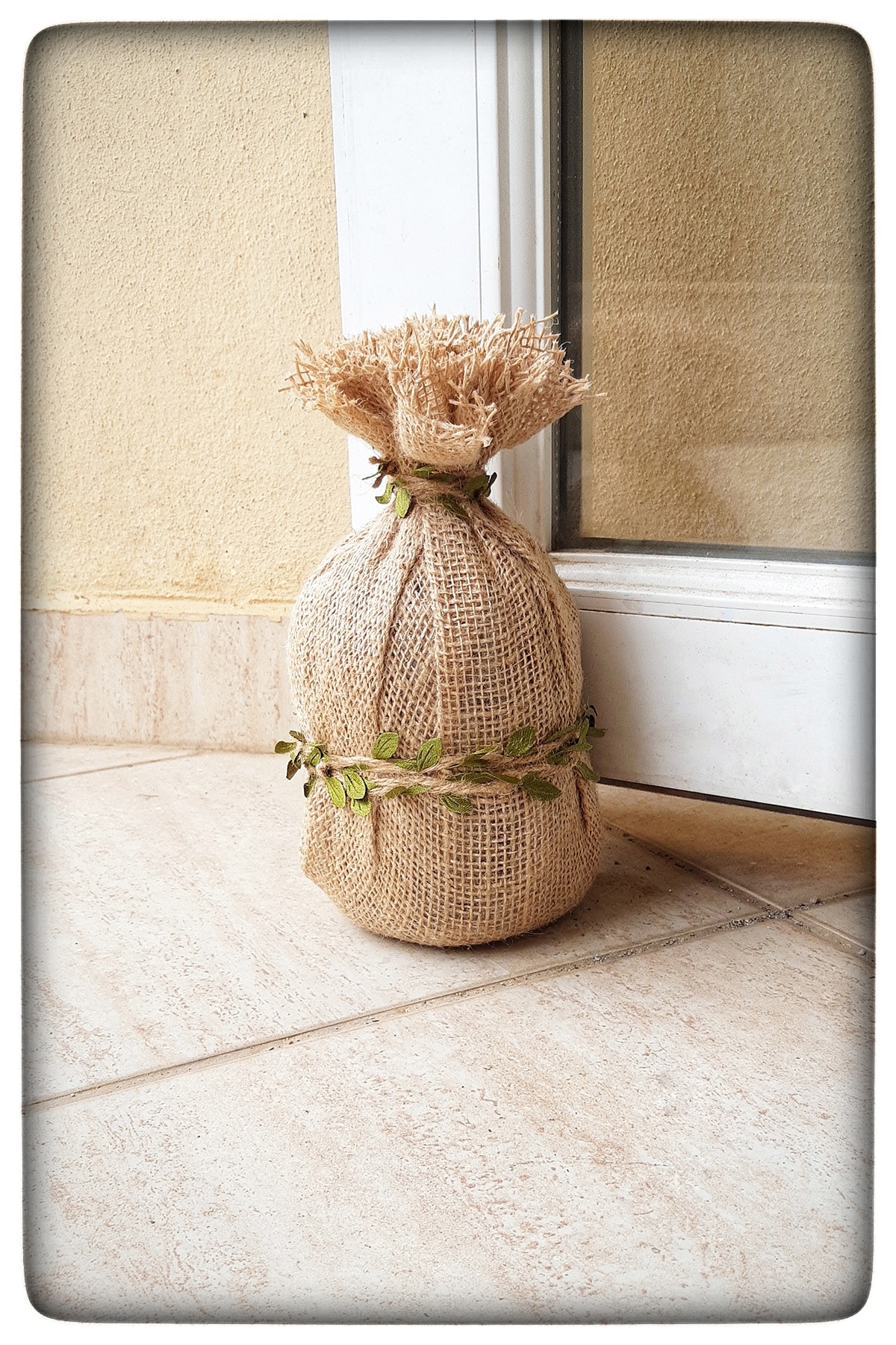 Yapımında kum ve jüt kumaş kullanılmış son derece dekoratif bir üründür