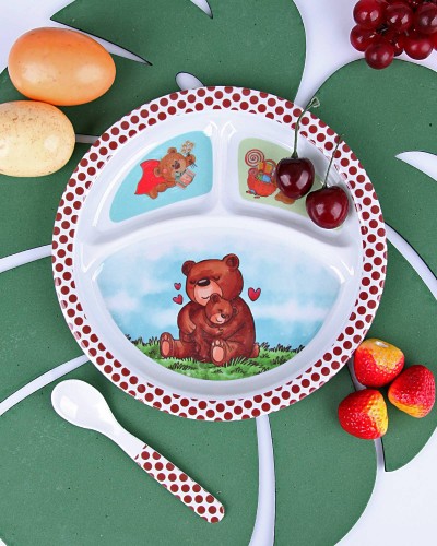 3 Bölmeli Tabak ve Bir Kaşık Set Halindedir.