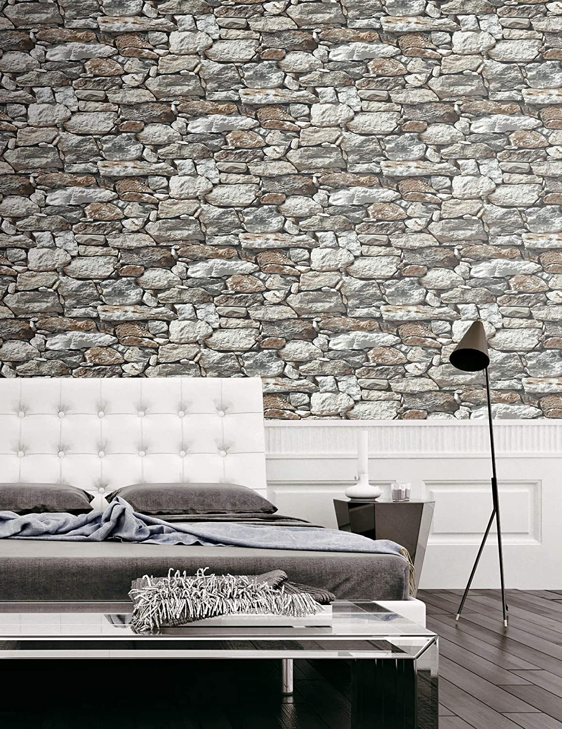 Taş Duvar Desenli Kendinden Yapışkanlı 3D Duvar Raf Kapı Kaplama Kağıdı 3 Metre 60 Cm