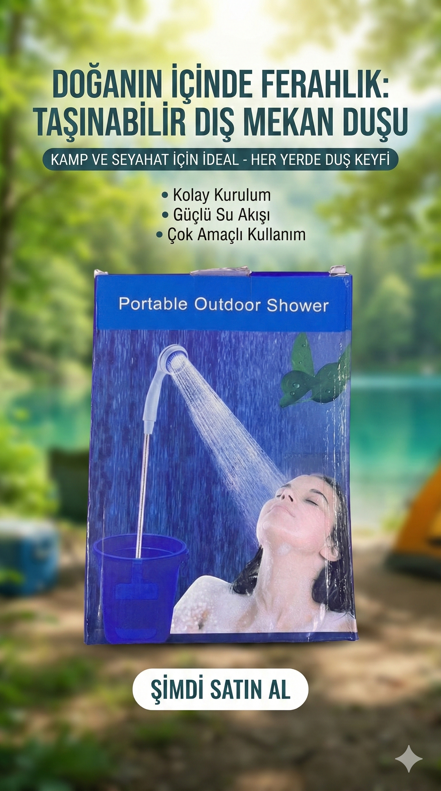 Açık kamp için harika, yürüyüş, sırt çantasıyla, kendini sürüş, balıkçılık, avcılık, çocuklar banyo, bitkiler sulama, köpekler, kediler temizlik, vb.