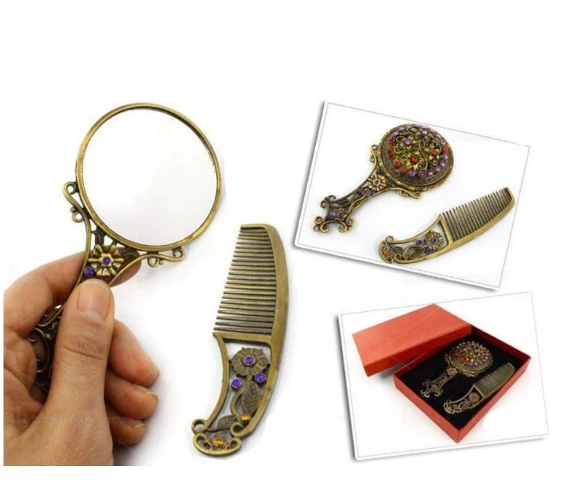 1 Adet Taşlı Makyaj Ayna ve Tarak Seti.