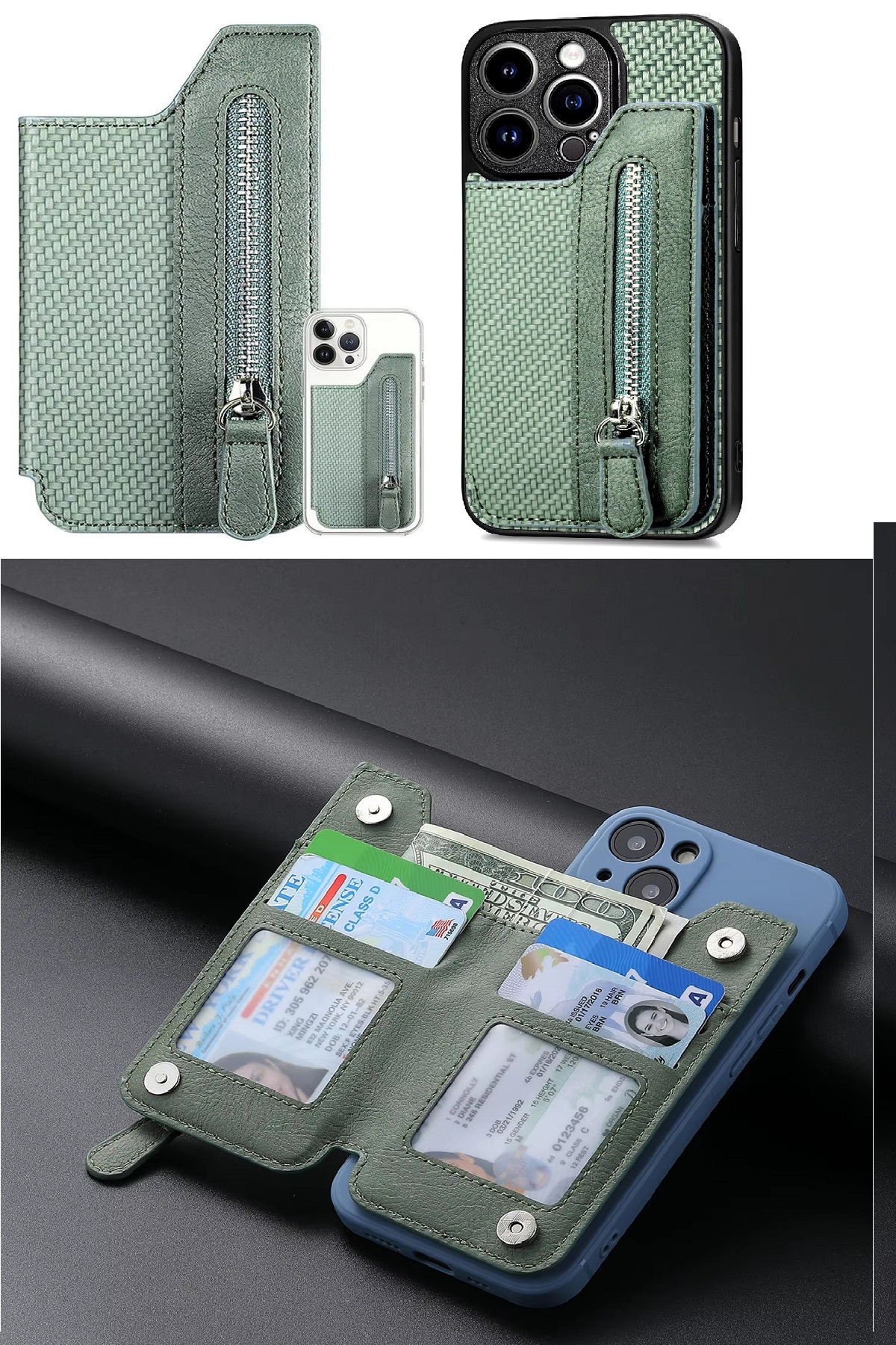 Telefon Cüzdanı Telefona Yapışan Kartlık Cüzdan Yeşil Fermuarlı Mıknatıslı 6 Gözlü