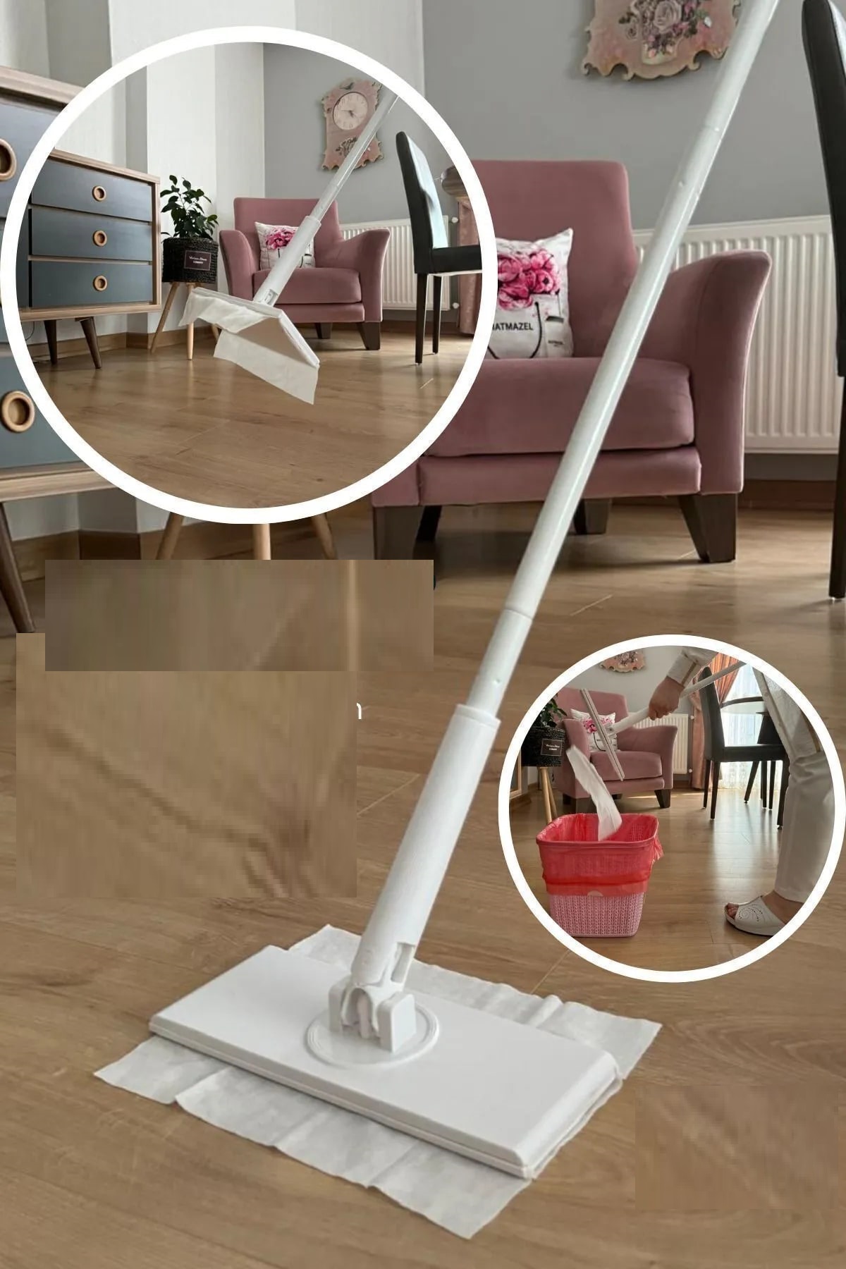 Bütün bunları yapma için ürüne bez takarken yada çıkarırken mop kafa kısmını dik konuma getirdikten sonra.