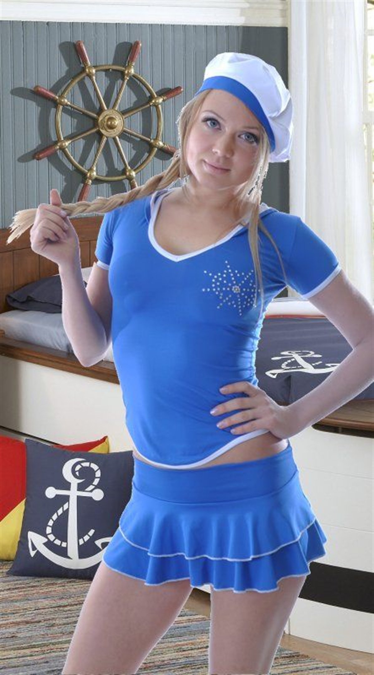 Esnek kumaştan üretilmiş etek , bluz ,şapka ve fluardan oluşmuştur. Bluz üzerinde dümen görüntüsünde taşlar mevcuttur. Standart ölçüde üretilmiş olup S/M bedenlere uygundur.