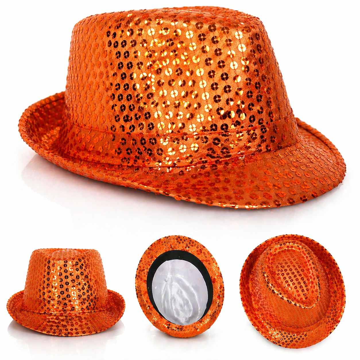 Turuncu payet kaplama tasarımıyla dikkat çeken bu şapka, ışık altında parlayarak ortamın enerjisini yükseltir. Yetişkin kullanımına uygun standart ölçüsü sayesinde rahat bir kullanım sunar.
