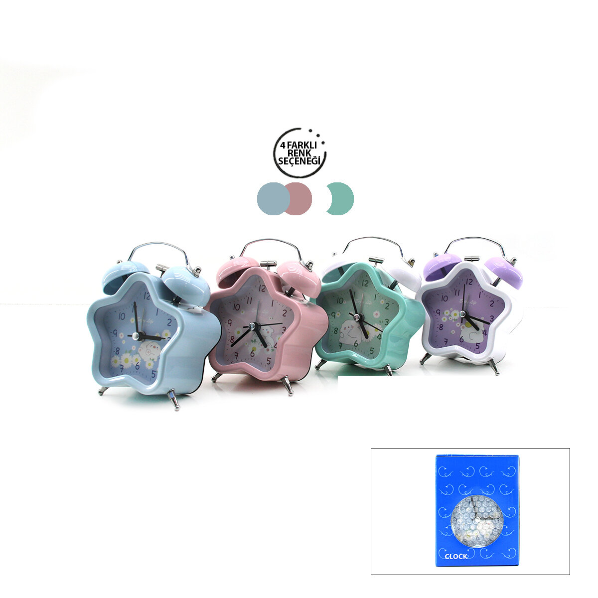 TWIN BELL ALARM CLOCK BGC-18 YILDIZ MASA ÇALAR SAAT ( METAL KASA RENKLİ ) ( PİLLİ & IŞIKLI ) ( ÇAP: 8.8CM )*100
