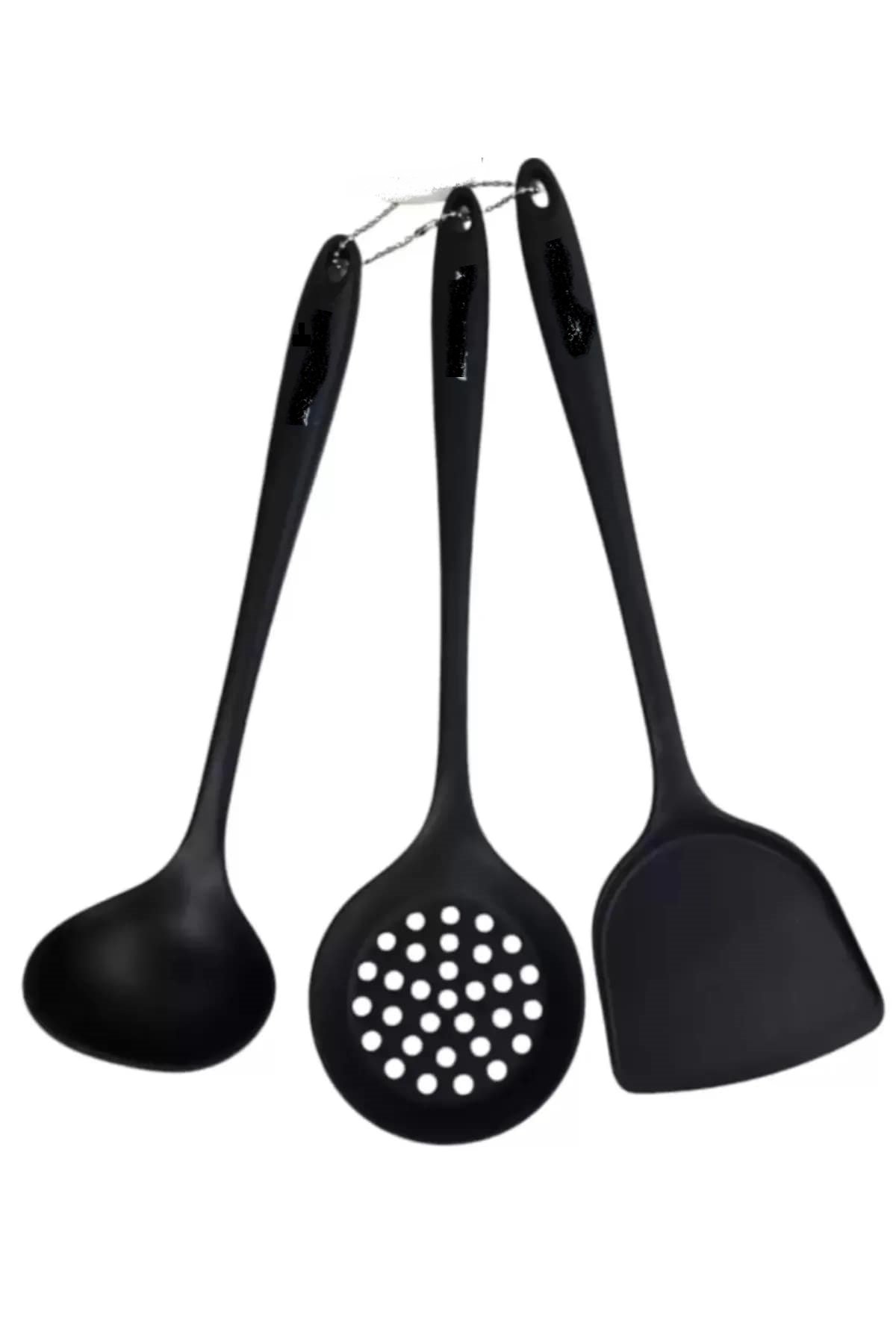 Yanmaz Yapışmaz Silikon Kaplama 3 lü Mutfak Yemek Hazırlık Seti Kepçe Kevgir Spatula