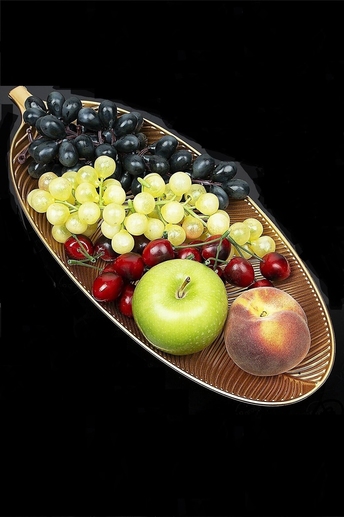 1 Adet Yaprak Figürlü Lüks Meyve Çerez Kasesi Gold 40 Cm