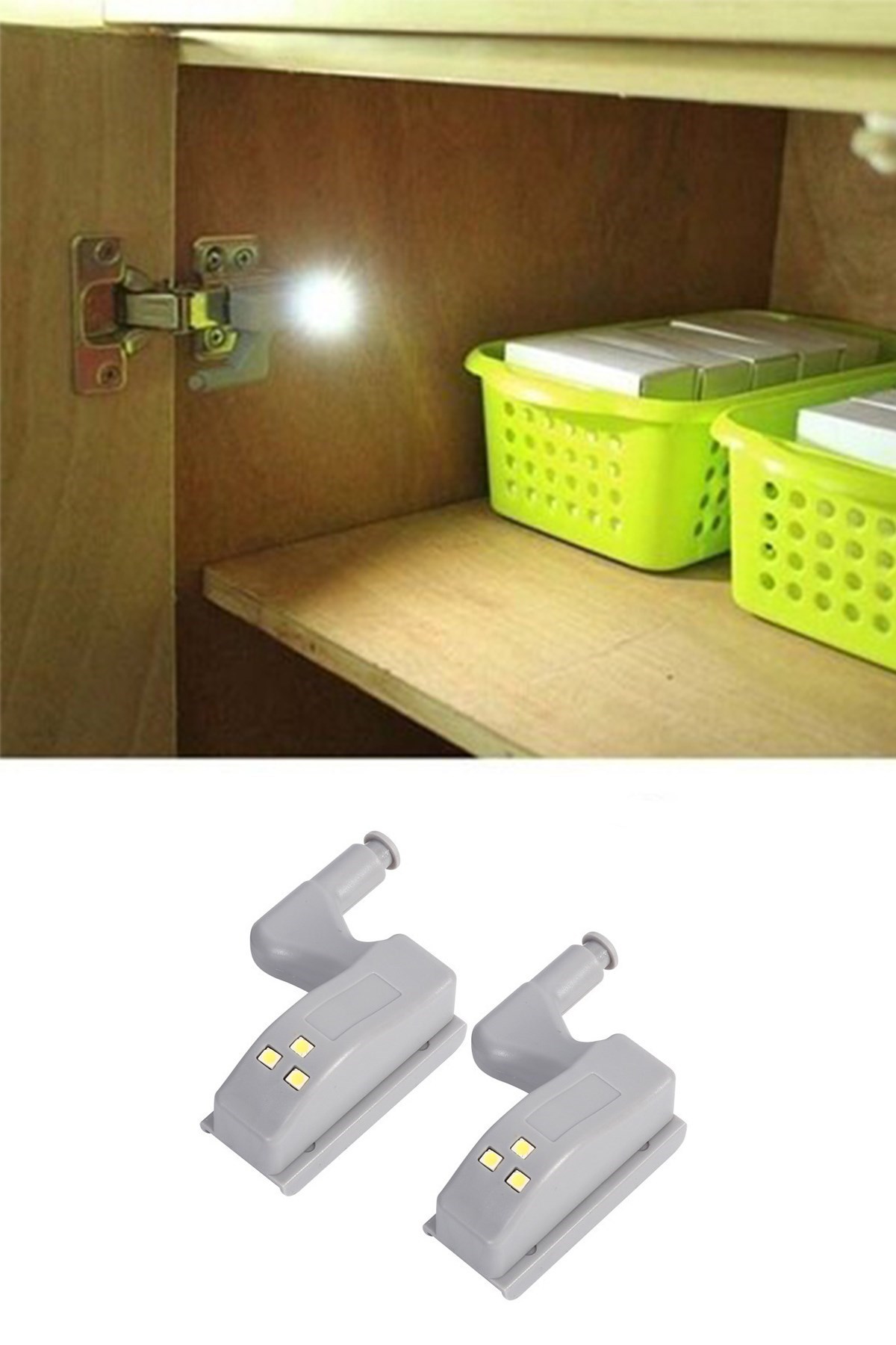 Gardrop Mutfak Dolap İçi Sensörlü Led Işık Aydınlatma 2li Menteşe Üstü Enerji Tasarruf Lamba Kurulum